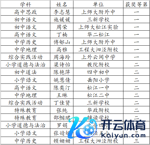 本年全市有78名教师获一等奖,172名教师获二等奖,62名教师获三等奖。 松江区一等奖获奖教师为: 上师大附外中李志慧、三新学校施媛媛、上师大松江本质周荣、华二松江丁楠、上师大附外中傅郇山、工程大泗泾附校精熟、上外云间中学周海玲。 值得一提的是,7东谈主中初中文文教师占2名,而全市初中文文一等奖仅8个。