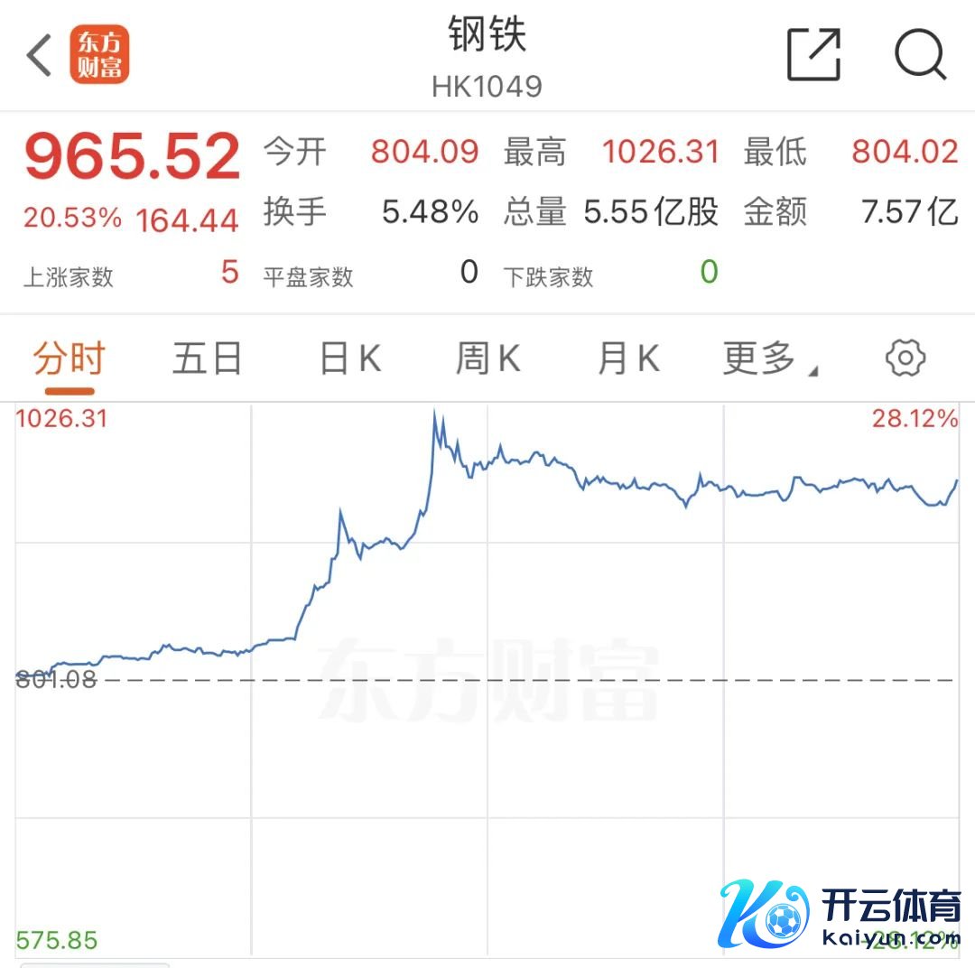 今天盘面最让东说念主不测的是钢铁板块。开盘之后,钢铁板块即是高开高走,午后更是进一步走高。A股钢铁指数涨幅达到5.6%,港股钢铁行业举座涨幅更是一度跨越25%,力度荒废。那么,究竟是何起因导致钢铁板块爆发?