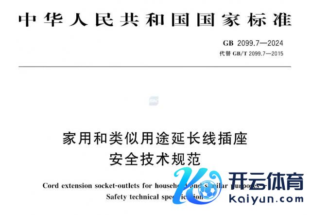 《家用和访佛用途延迟线插座 安全本事范例》(GB 2099.7 — 2024)已于本年 8 月 1 日起肃肃执行。新范例从电气安全、防火盘算到走电防护均作了全面升级。