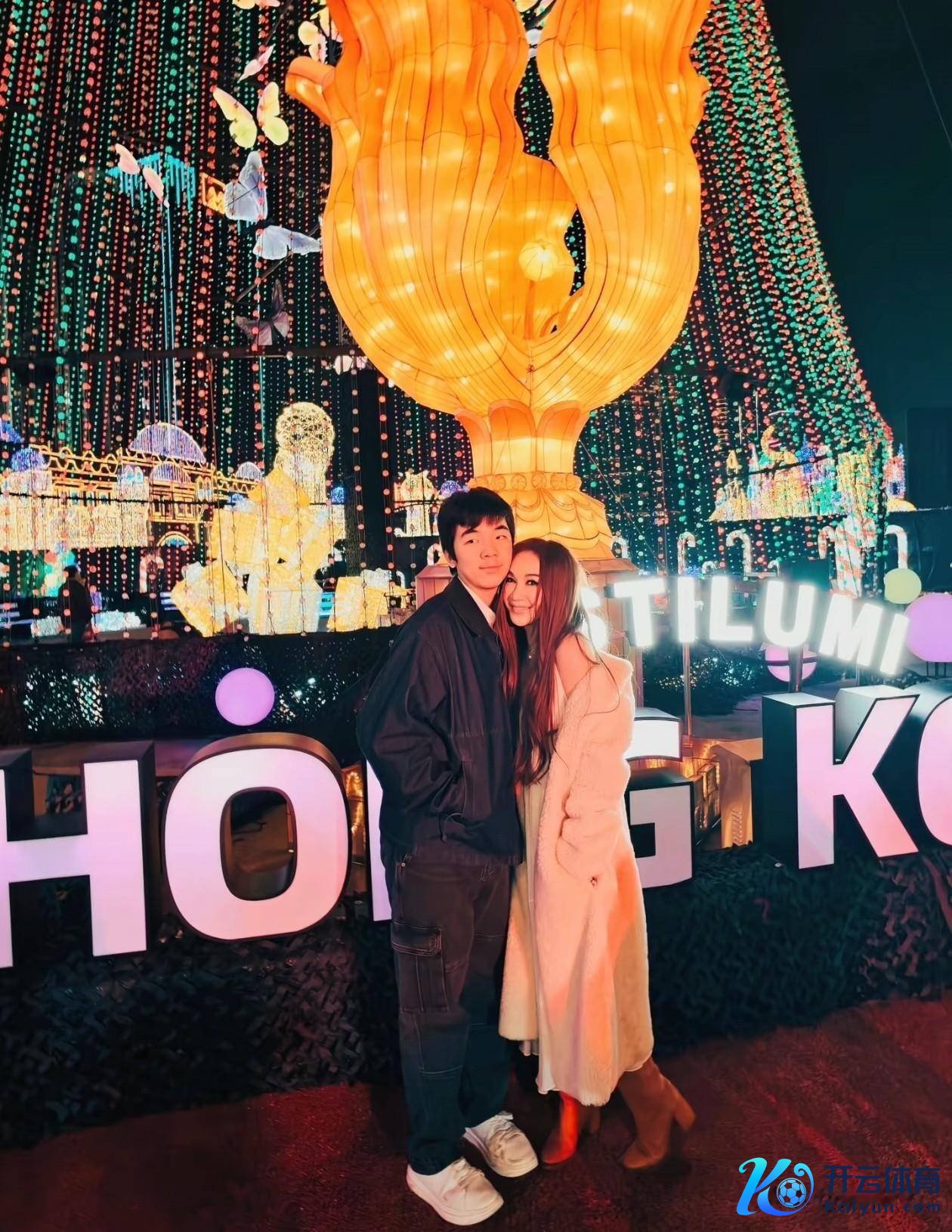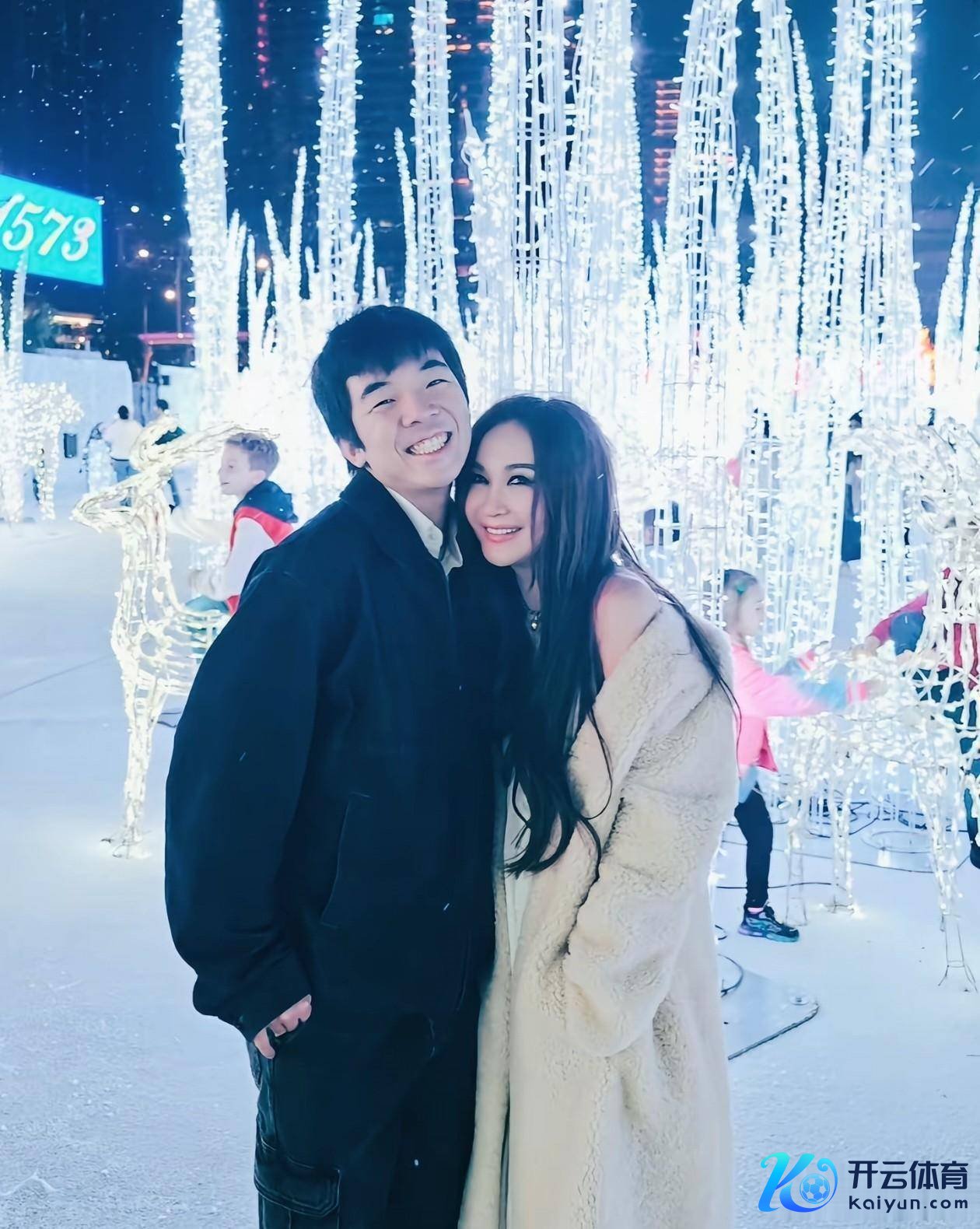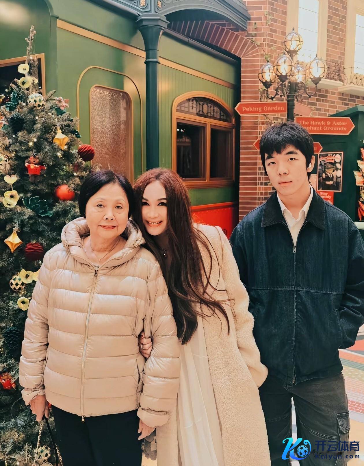她的身旁站着16岁的犬子何国伦,像片里的他笑起来和爸爸简略,站着时比姆妈高好多,一眨眼果然快成年了。