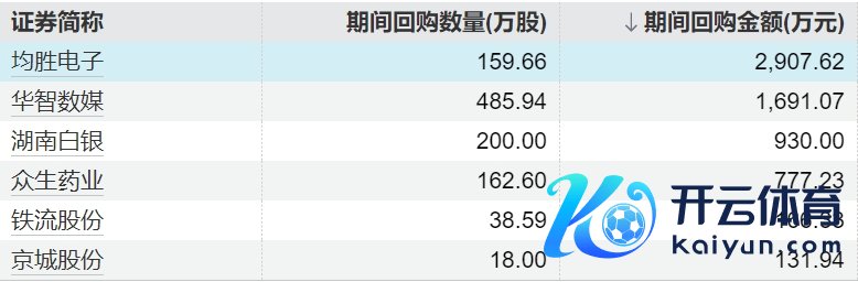 6家上市公司股票获回购kaiyun中国登录入口登录,均胜电子回购金额最高6家上市公司股票获回购,均胜电子回购金额最高