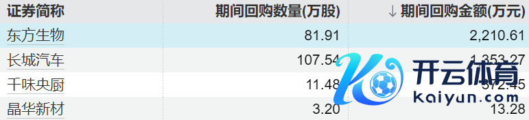 4家上市公司股票获回购,东方生物回购金额最高4家上市公司股票获回购,东方生物回购金额最高